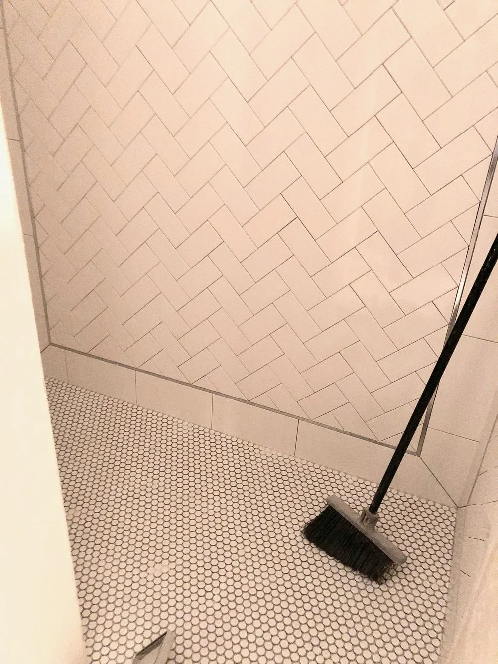 Our client decided to go with a classic white tile accented with black and gray trim, a totally timeless combination in our opinion.
